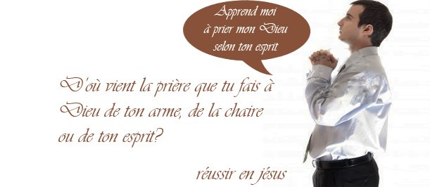Ce que nous devons savoir et que Dieu ne réalise pas d'une prière faite selon notre chaire et ses désires (la convoitise…) non plus celle notre âme et ses émotions (la peur, la colère, le sentiment…) Mais il prend plaisir à la prière faite selon l'Esprit. C'est une forme de prier et recherche avant tout ce qui est agréable à Dieu. Une telle prière nous donne un grand pourcentage d’exaucements.
